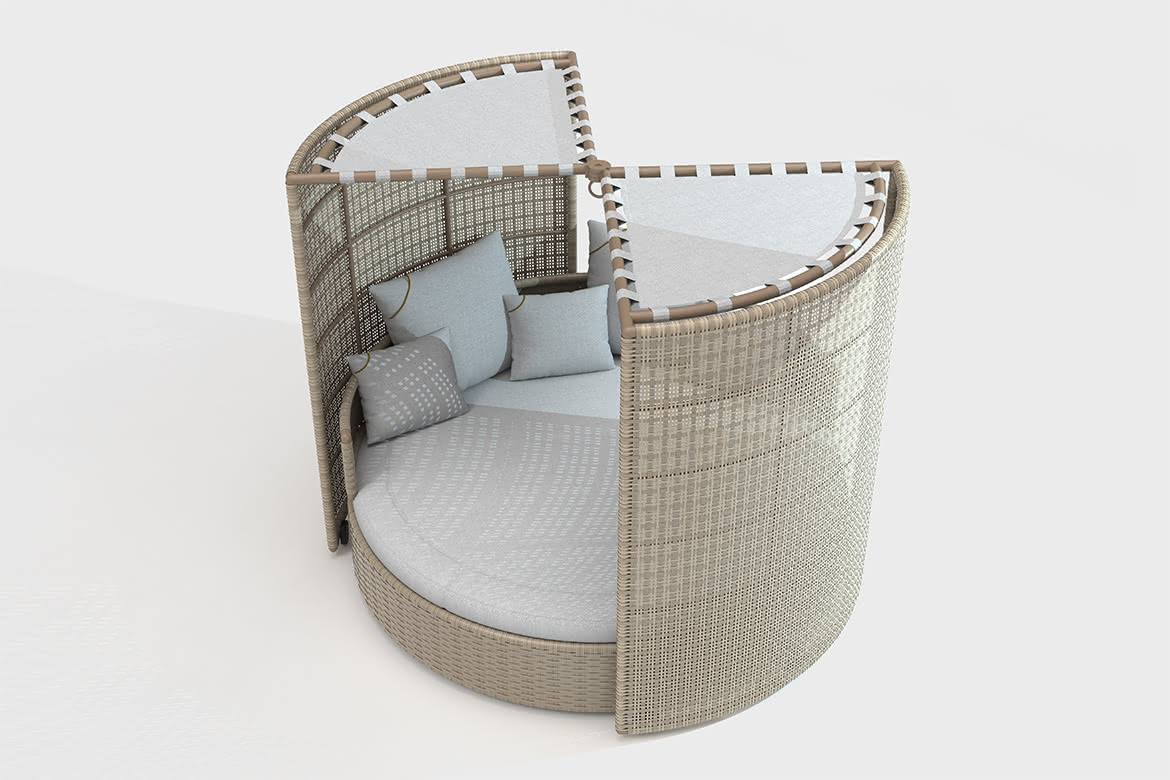 Le lit Eclipse allie tressage artisanal raffiné et design ingénieux, transformant terrasses, bords de piscine ou plages privées en espaces lounge exclusifs.