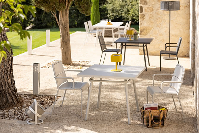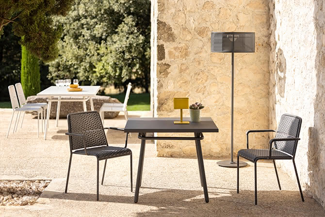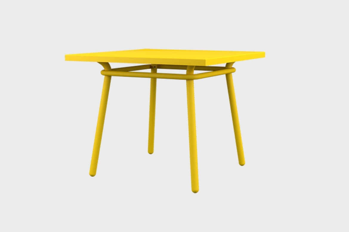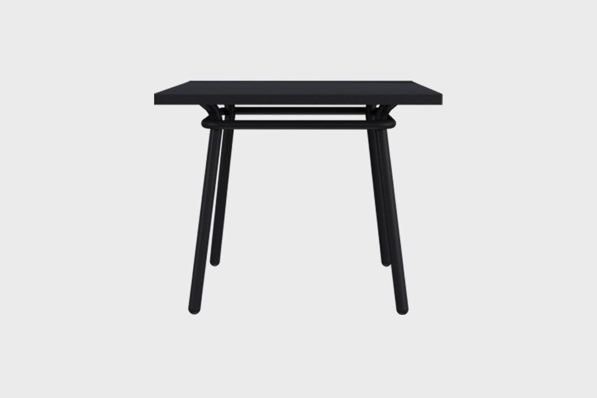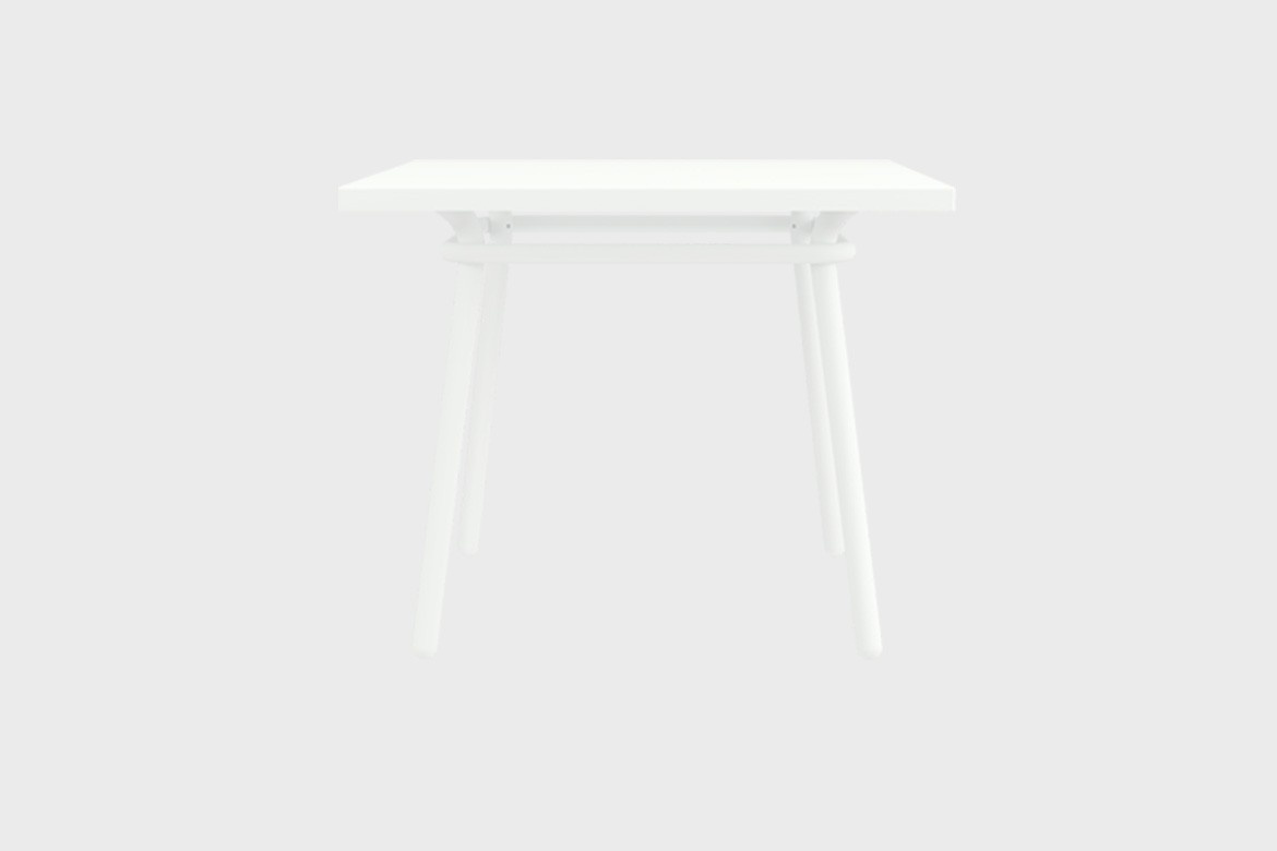 This compact dining table is carefully designed around a discreet yet relevant set of lines. The proportions used, its cleanness, flair, and the contemporaneous of its lines make it impeccable for use in indoor spaces. Made in aluminium and finished in oven cured paint, this table will stay useful for long, no matter the weather, or the use.