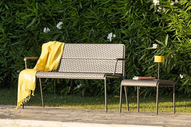 An ottoman which can be used alone or added to the lounge chair is the base for Christophe Pillet's design. Useful as an ottoman, a foot rest, or a side table, this piece is useful and beatiful. The proportions used, its cleanness, flair, and the contemporaneous of its lines make it impeccable for use in indoor spaces as well as outdoor.