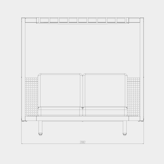 Elysium harmonizes comfort and sophistication in a minimalist yet striking architectural structure. Designed as a double square sunbed, it features a three-position reclining backrest for customized relaxation. Its graceful sunshade filters light delicately, while sliding side curtains allow you to conceal yourself in total privacy or open to panoramic views.
