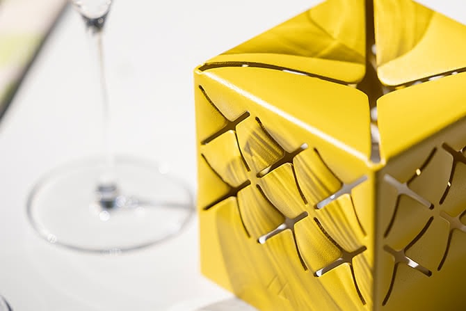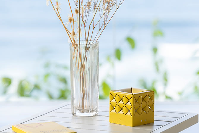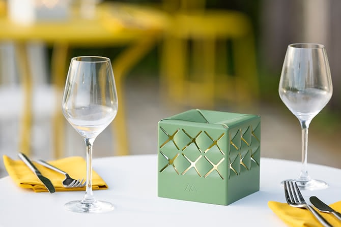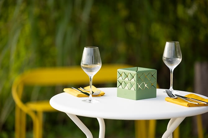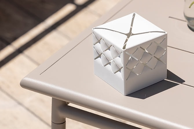This versatile lamp can be used anywhere: on your table, patio, or garden, and provides hours of brilliant light thanks to its removable, rechargeable battery. Inspired by the delicate paper cut-outs of Japanese kirigami art, its lacquered aluminum shade adds a unique, artistic touch to your space.