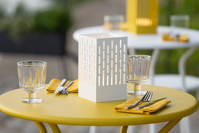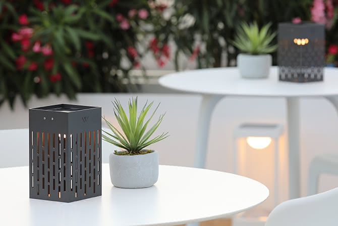 Modern and minimalist, this table lamp easily adapts to indoor and outdoor environments. Its sleek design and wireless system can be flexibly integrated into various environments, from gardens and patios to contemporary interiors. Equipped with our new removable and rechargeable battery system, you’ll never run out of light again.