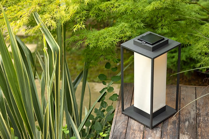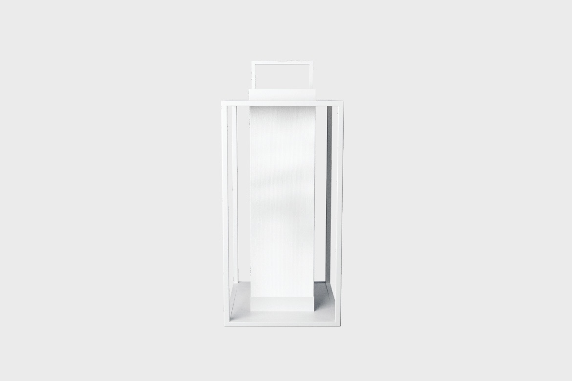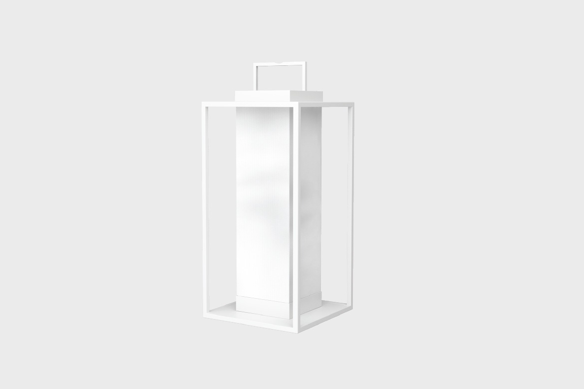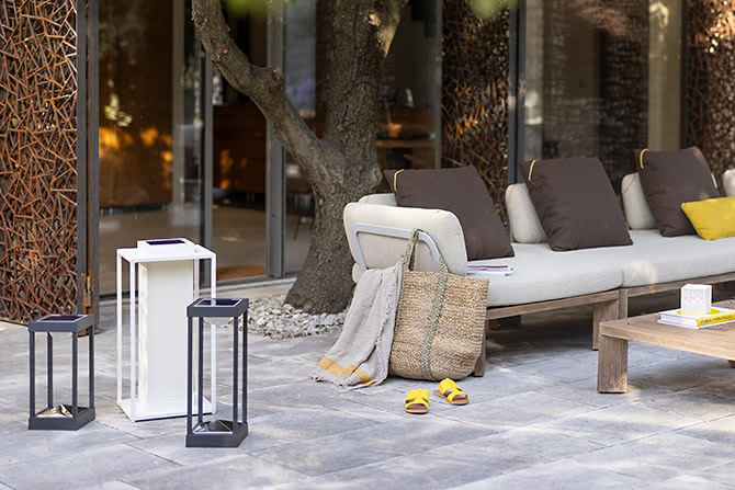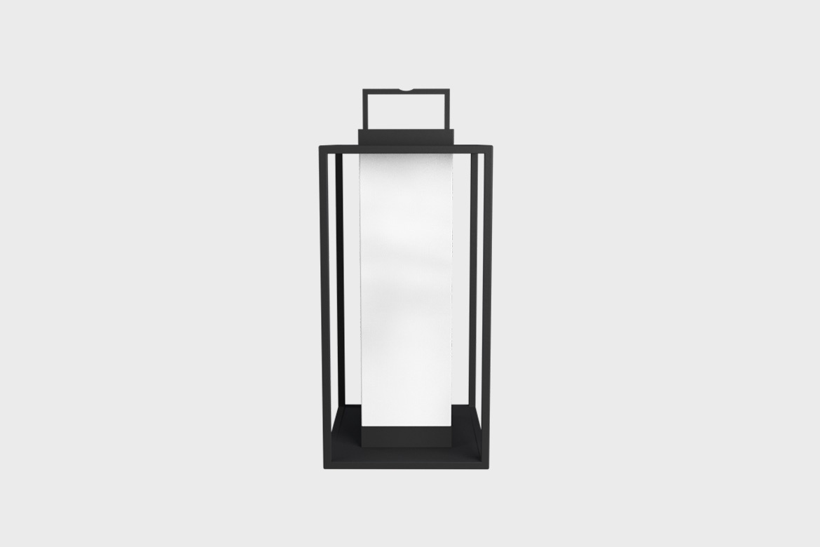 La Lampe Pacha, the solar powered version of a large candle lit lantern. A true nomad by nature it will follow you outside or inside the house. Due to its stretched fabric, it will provide a soft halo of light which will create a warm atmosphere. The frame is made of charcoal or white powder coated aluminum and is dressed with a waterproof offwhite coated fabric.