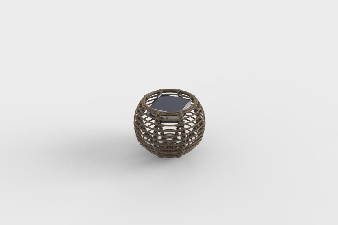 This lamp is made from PE synthetic fibre, bringing a touch of warmth and voluptuousness to outdoor spaces.