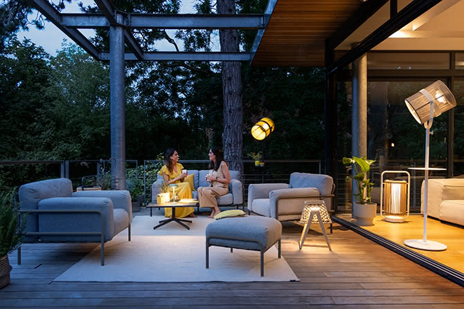 On the floor or a table, indoors or out, the Pendule Lamp creates the perfect ambiance for any occasion.