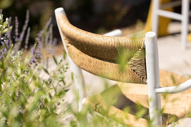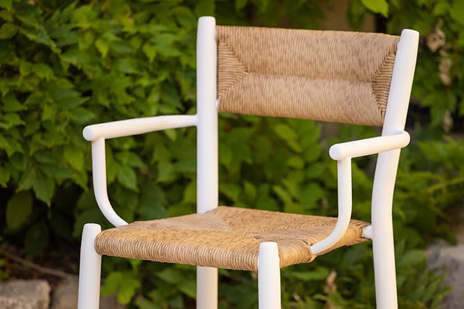 Stipa armchair, like its sister, is a reinterpretation that borrows extensively from the traditions of the Mediterranean. Slightly wider, it makes for a comfortable dining armchair, as well as working well and auxiliary seating. Like all of the Stipa seating, it is meaningful aesthetically and charged with emotions.