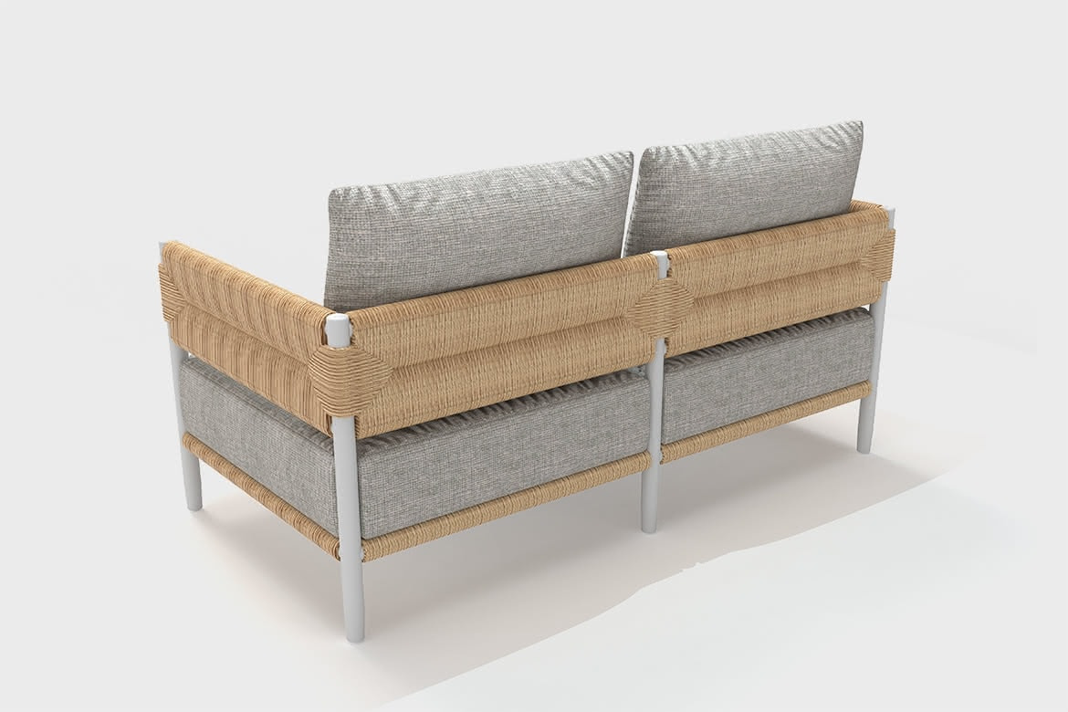 Composed of armchairs, sofa, coffee table, and side table, Stipa offers a generous and cocoon-like seating experience. Straw-style woven seats and backrests, inspired by Mediterranean craftsmanship, invite conviviality and sun-drenched relaxation.