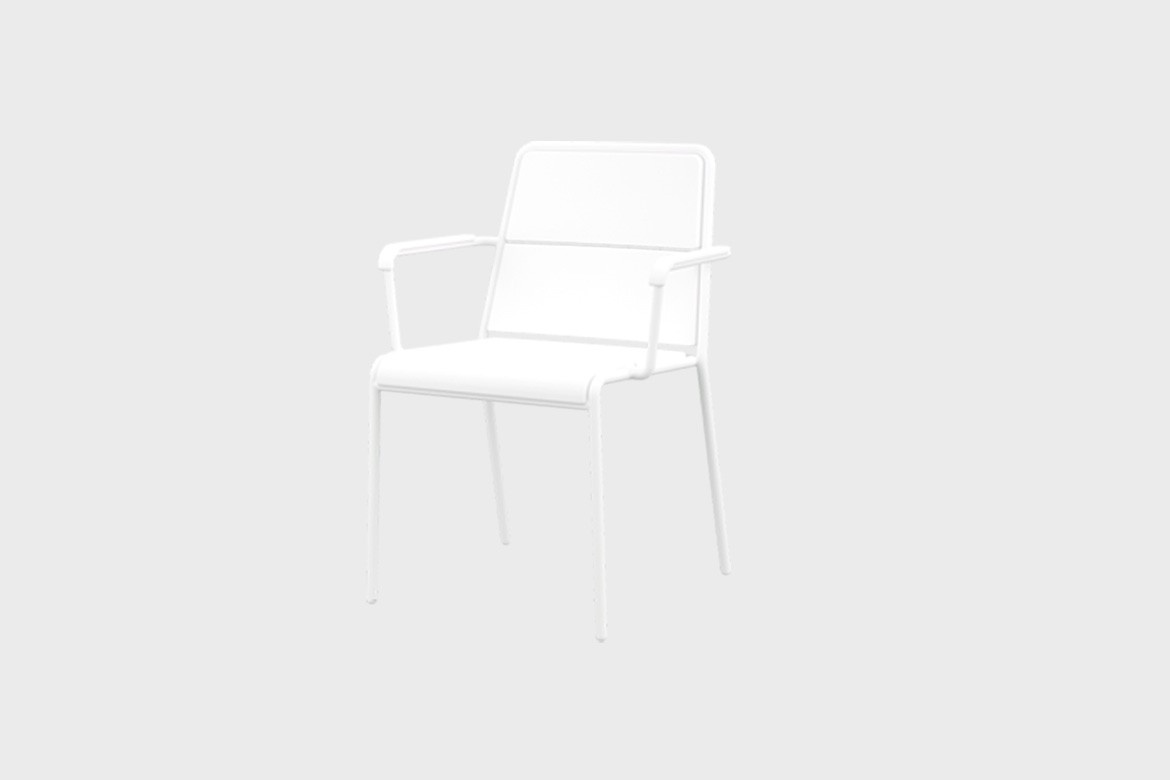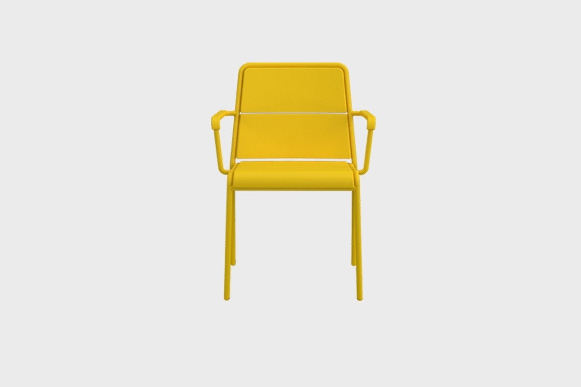 Créé pour l'extérieur et à vocation intérieure, ce fauteuil ludique capture l'essence du jardin à la française. Bien qu'il soit équipé de panneaux en aluminium dont la forme imite le rembourrage, l'assise du fauteuil A600 de Christophe Pillet suscite une réponse chaleureuse. La peinture en poudre séchée au four procure un toucher doux et tactile, ainsi qu'une texture sableuse mate, urbaine et non salissante.